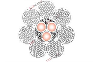 鋼絲繩電纜,抗拉專用電纜,電纜包裹在鋼絲繩之中,電纜在鋼絲繩的繩芯位置。